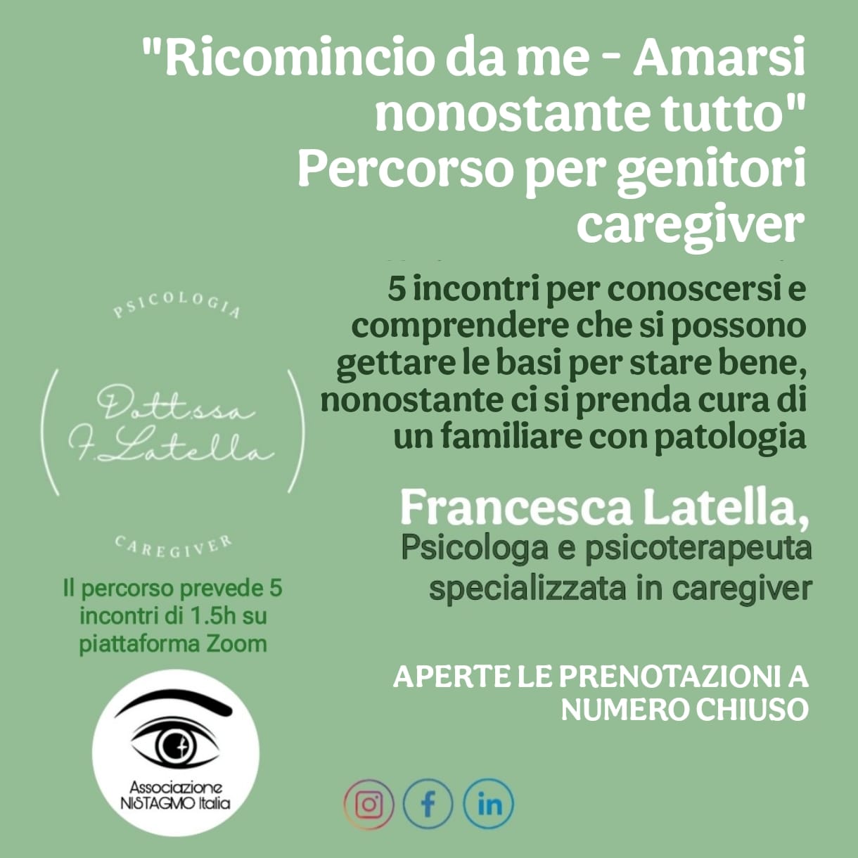 “𝗥𝗜𝗖𝗢𝗠𝗜𝗡𝗖𝗜𝗢 𝗗𝗔 𝗠𝗘 – 𝗔𝗺𝗮𝗿𝘀𝗶 𝗻𝗼𝗻𝗼𝘀𝘁𝗮𝗻𝘁𝗲 𝘁𝘂𝘁𝘁𝗼”, della dottoressa 𝗙𝗿𝗮𝗻𝗰𝗲𝘀𝗰𝗮 𝗟𝗮𝘁𝗲𝗹𝗹𝗮, psicologa e psicoterapeuta specializzata in caregiver.